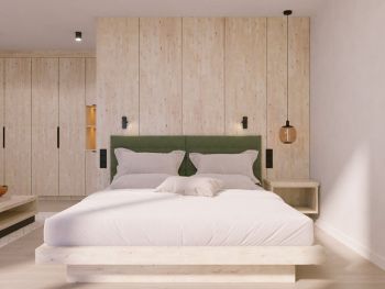 Schönes geräumiges Familienstudio mit zwei getrennten Schlafräumen, Balkon mit Blick zum Spielplatz, Badezimmer mit Dusche und getrenntem WC, Föhn, Eichenholzboden, gemütlicher Wohnbereich, Schreibtisch, großer TV, Safe, Breitbandinternet und Tiefgarage.