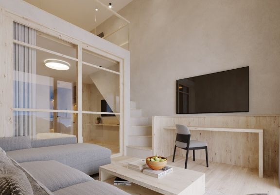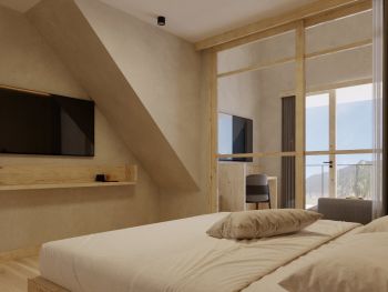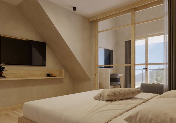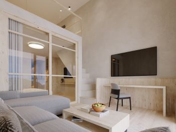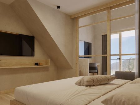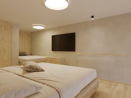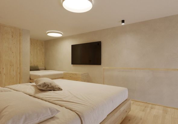 Schönes, geräumiges 2 stöckiges Familienstudio mit zwei getrennten Schlafräumen, Balkon mit Blick auf die Berge, Badezimmer mit Dusche und getrenntem WC, Föhn, Eichenholzboden, gemütlicher Wohnbereich, Schreibtisch, Kabel-TV, Safe, Breitbandinternet, und Tiefgarage.