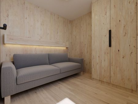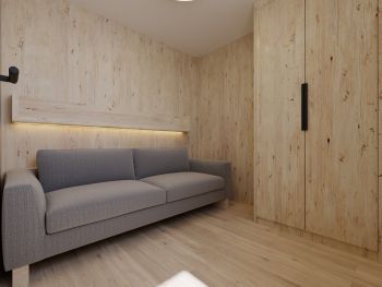 Schönes, kompaktes Familienstudio mit zwei getrennten Schlafräumen, Balkon, Badezimmer mit Dusche und getrenntem WC, Föhn, Eichenholzboden, gemütlicher Wohnbereich, Schreibtisch, großer TV, Safe, Breitbandinternet, und Tiefgarage.