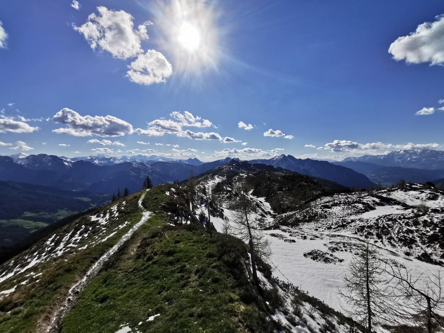 Die Wanderung haben wir am Mittwoch den 27. Mai gemacht. Ein herrlicher Frühlingstag mit schönstem Wetter. Davor die Tage war es regnerisch und am Berg hat es auch geschneit. Dadurch lag auf der Höhe noch etwas Schnee und die Stimmung war einzigartig.